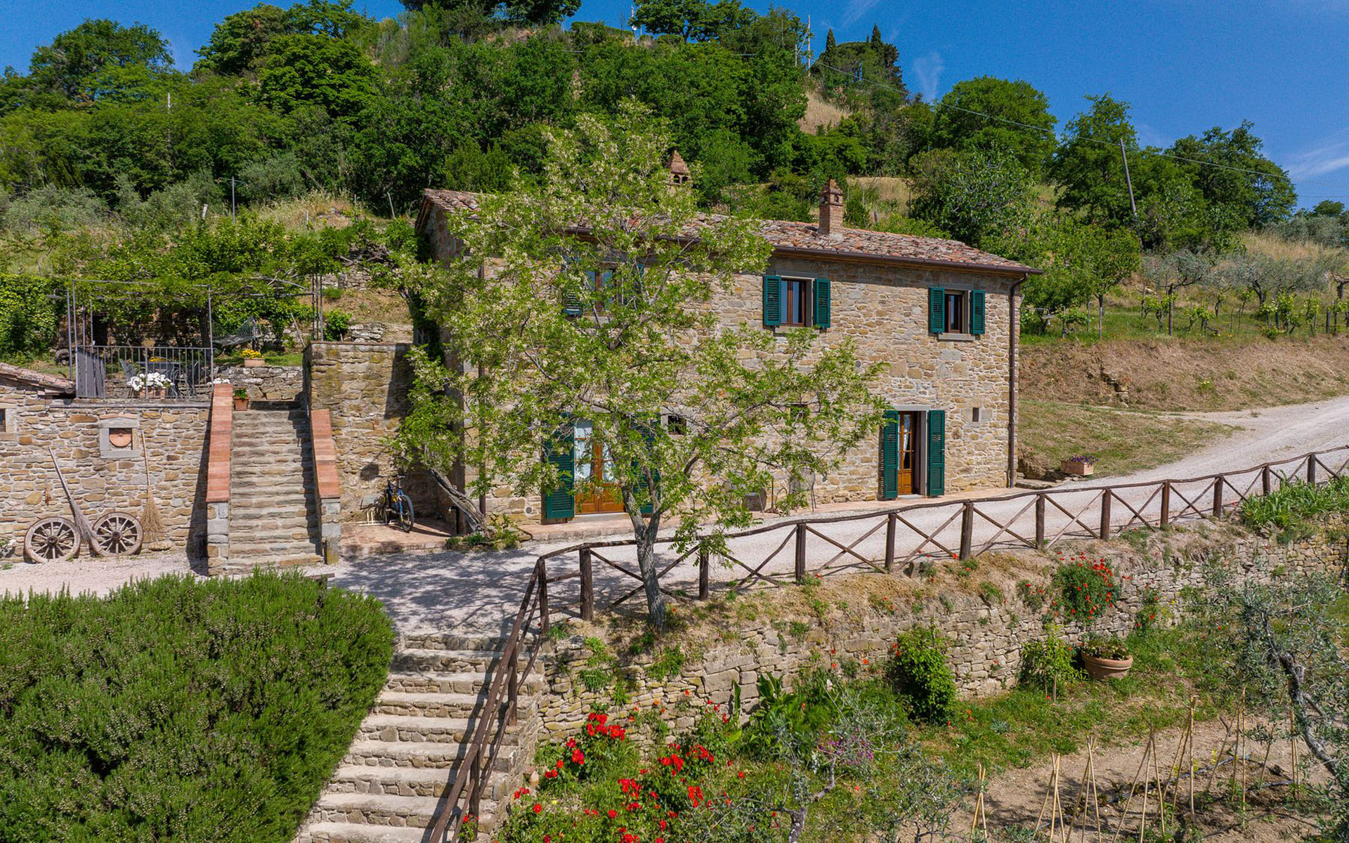 The Casale is composed of two houses made of stone in perfect Tuscan style with wooden ceilings and tiled floors.